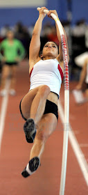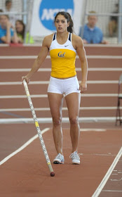 Allison Stokke, who normally rises over the pole-vaulting bar, rose to Internet Fame when a picture of her when she was 17 at a track meet was posted on the Internet.
